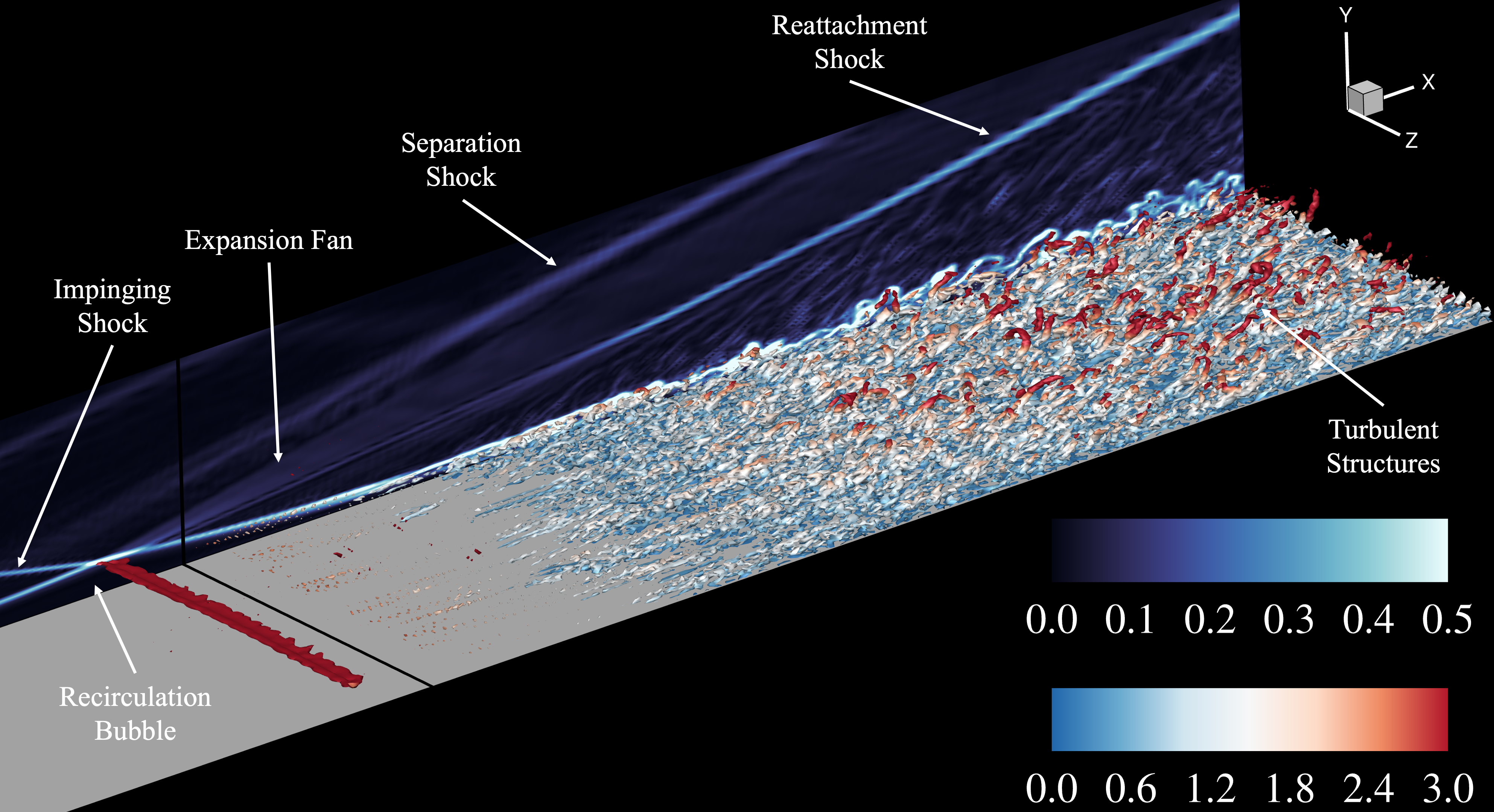 DNS and LES of hypersonic shock-boundary layer interactions.